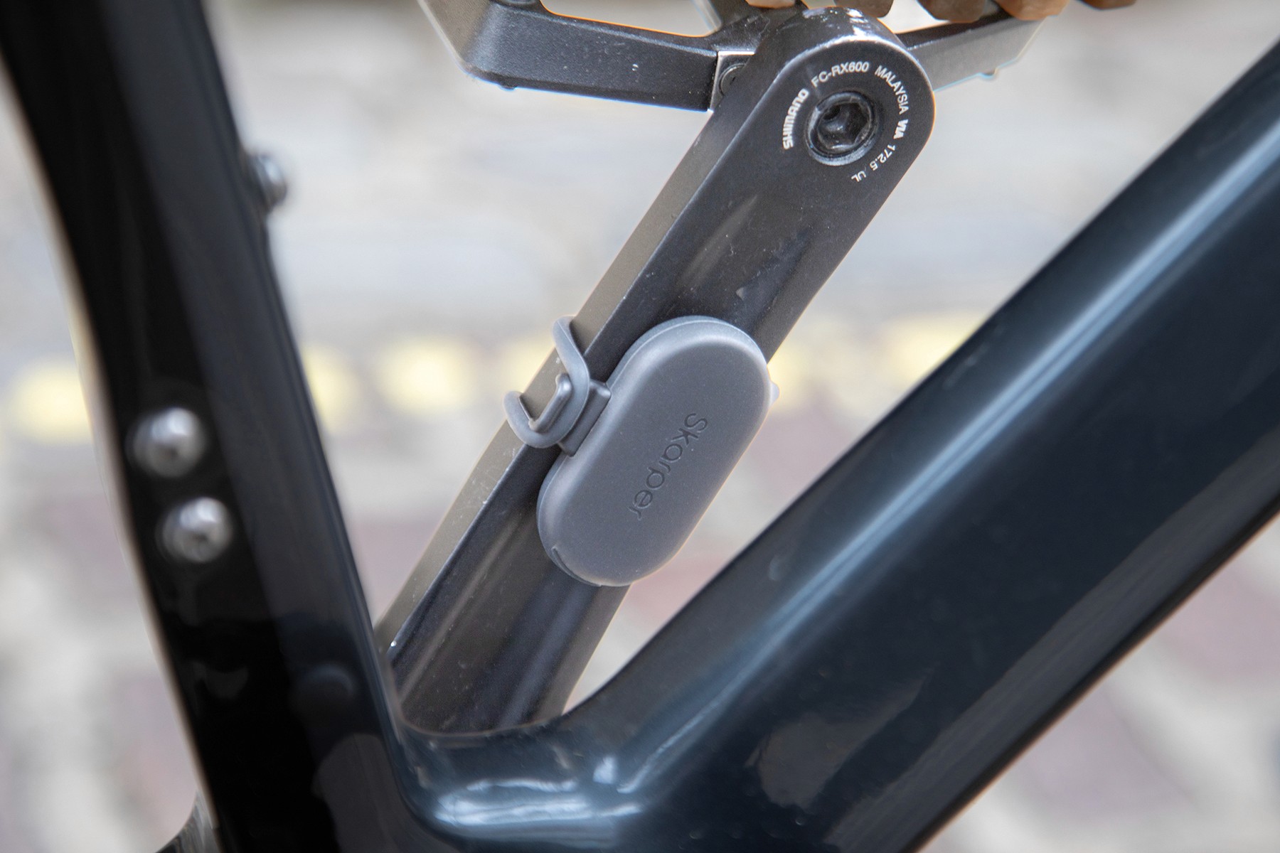 The Skarper Pedal Sensor is a bluetooth device that attaches to the bike’s crank, precisely measuring pedalling to tell the drive when and how much power to deliver.